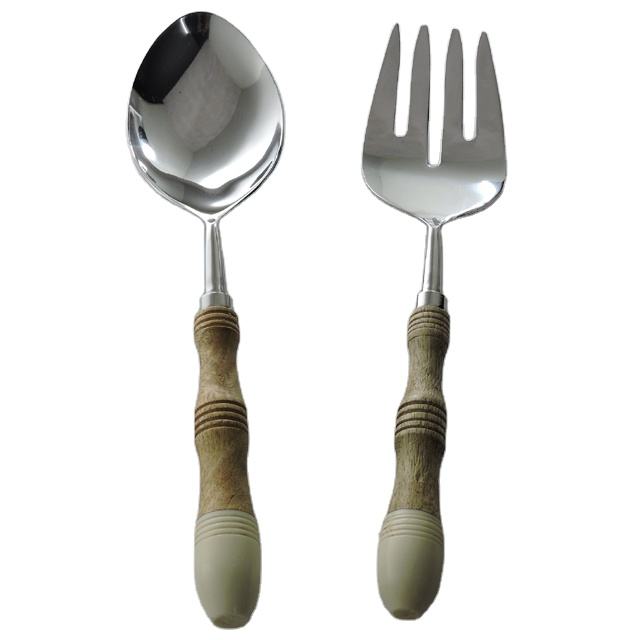 Hot Selling Stainless Steel Salad Server Set Wood Resin Handle Home Kitchen Vegetable Fruit Serving Tools for Serving Durable