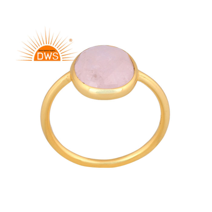 Hot Selling Sterling Silver 18K Gold Plated Natural Rose Quartz Gemstone Stackable Ring Demi Fine Jewelry For Women Gift For Her
