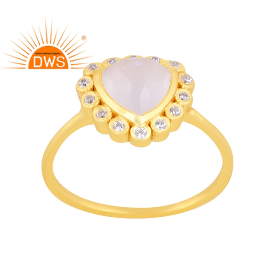 Hot Selling Sterling Silver 18K Gold Plated Cz & Rainbow Moon Stone Gemstone Stackable Ring Demi Fine Jewelry Manufacturer