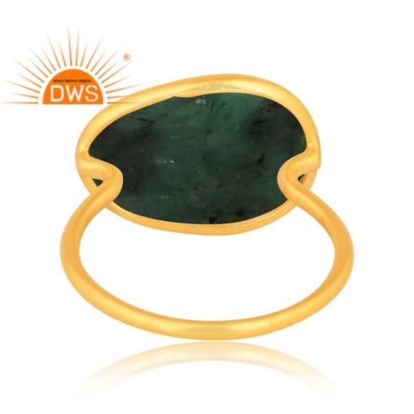 Hot Selling Sterling Silver 18K Gold Plated Natural Emerald Gemstone Stackable Ring Demi Fine Jewelry For Women Gift For Her