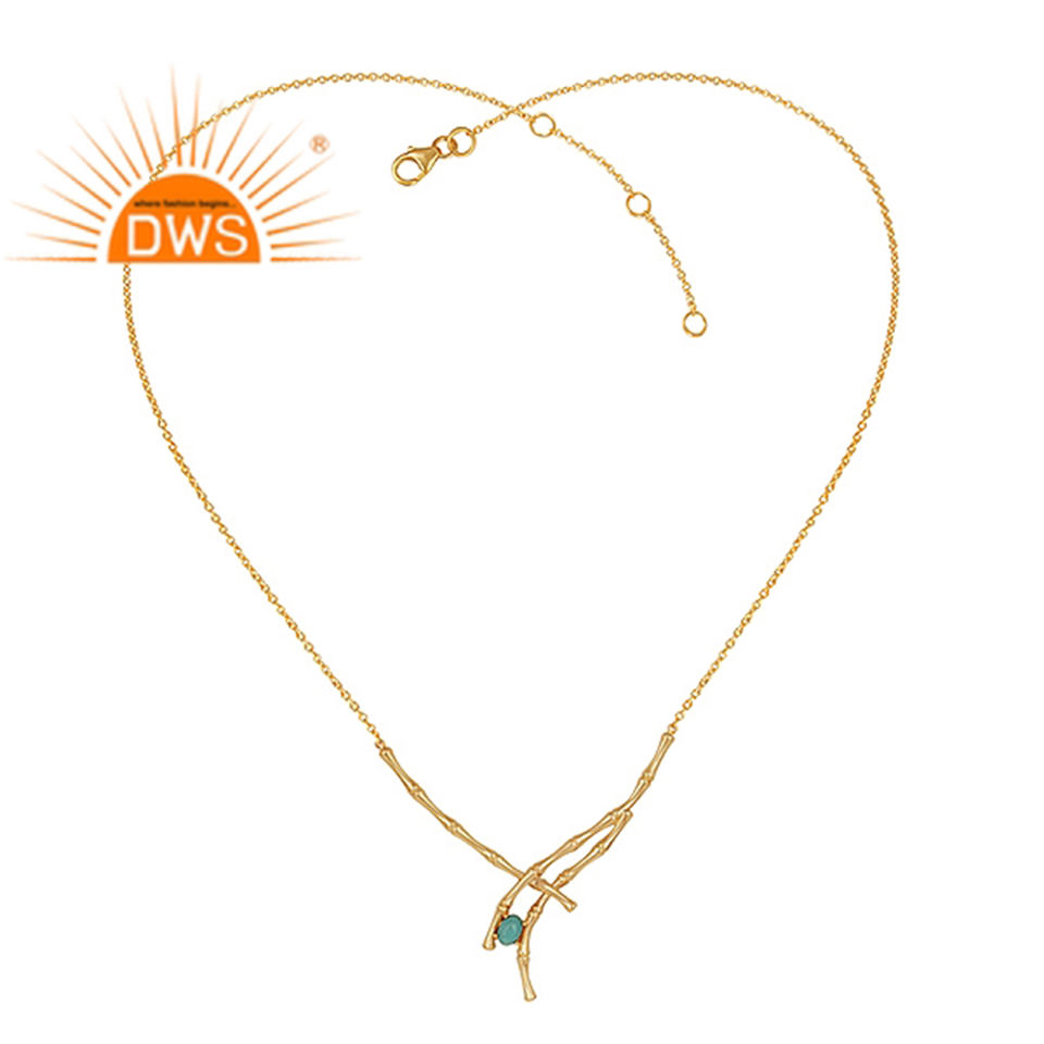 Hot Selling Sterling Silver 18K Gold Plated Arizona Turquoise Gemstone Pendant Necklace Demi Fine Jewelry Manufacturer