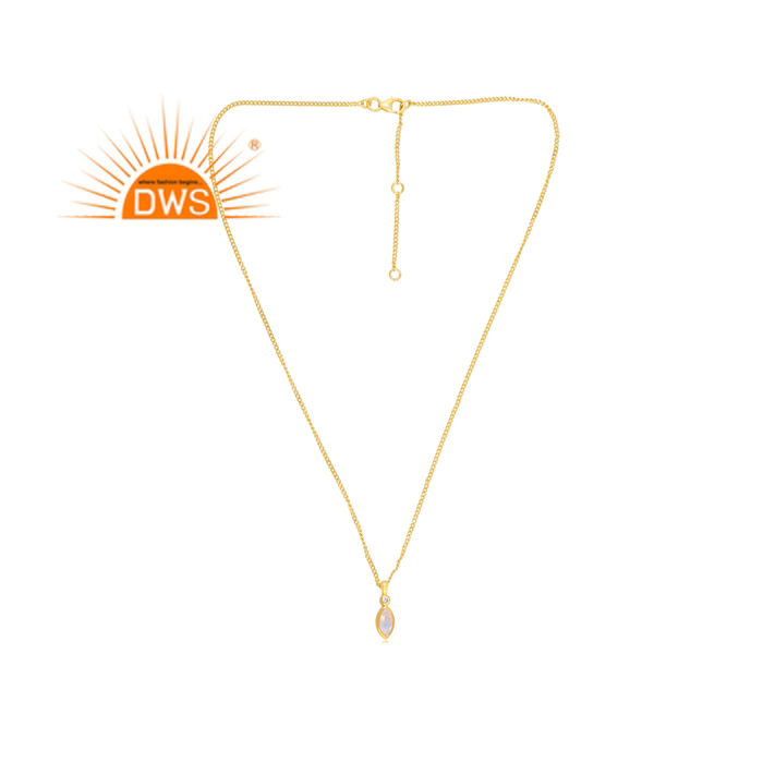 Hot Selling Sterling Silver 18K Gold Plated Cz & Rainbow Moon Stone Gemstone Pendant Necklace Demi Fine Jewelry Manufacturer