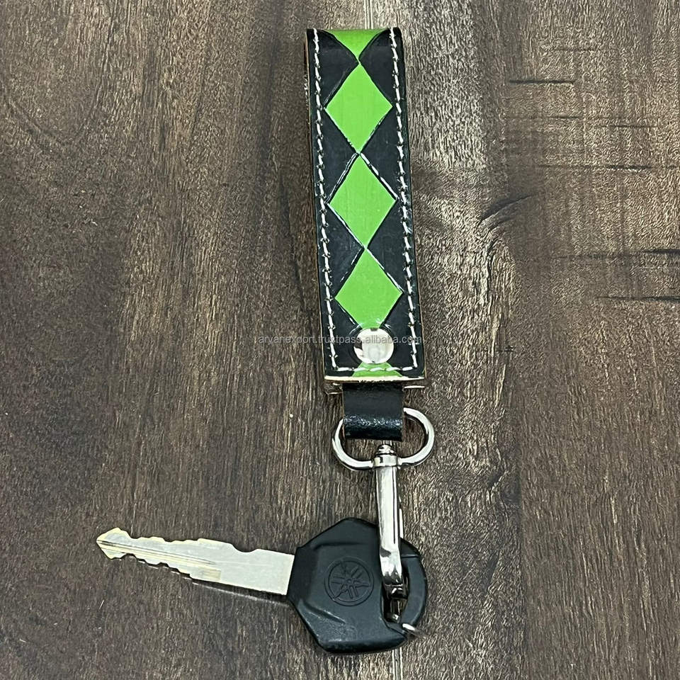Hot Selling Stylish Fashionable Handcrafted Cow Leather Keychain Checkered Design Key Holder for Corporate & Promotional Gifts