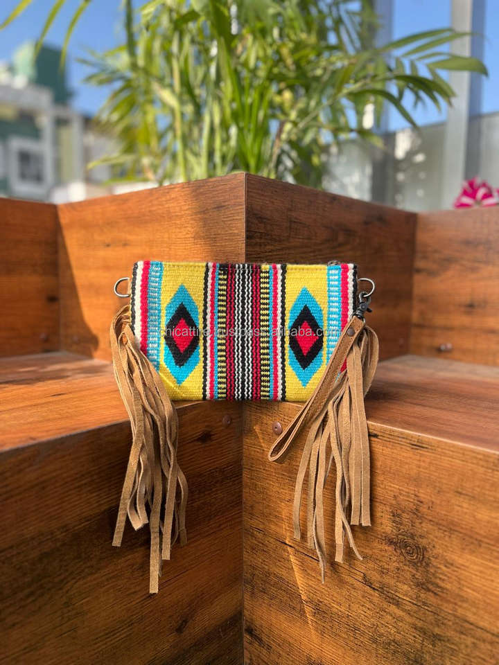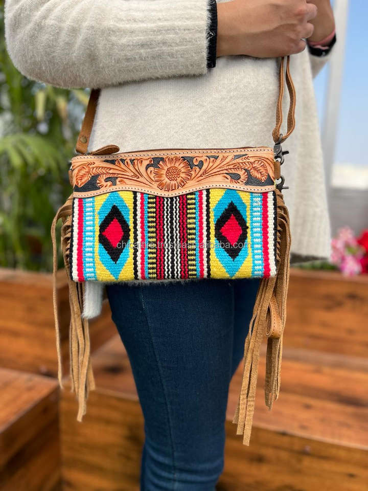 Hot-Selling Stylish Saddled Blanket Tooled Leather Sling Bags High Quality Aztec Leather Crossbody Bags Vintage Multi Color Bags