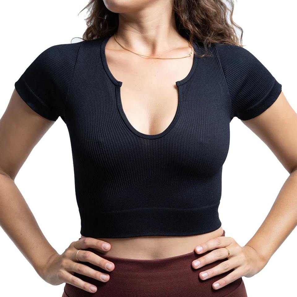 Hot Selling Stylish Women Black Color Ribbed Cotton Slim Fit V Neck Crop T Shirt for Sale Women Customized Crop Tops