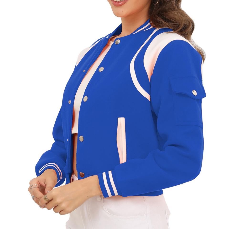 Hot Selling Stylish Women's Crop Varsity Jacket Long Sleeve and Short Length Casual Wear Trending Varsity Jacket for Winter Use