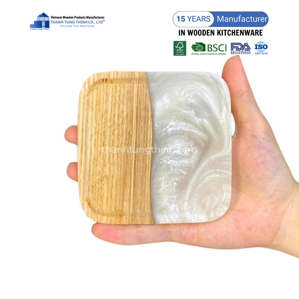 Hot Selling Sustainable Wood Resin Coasters Epoxy Resin Coaster for Drinks From Vietnam Factory Wholesale