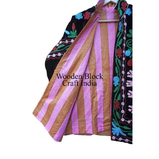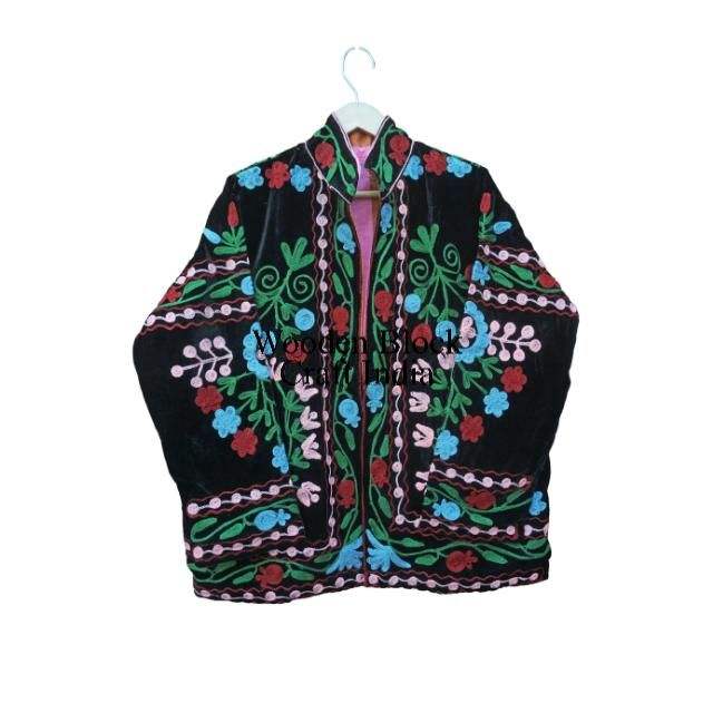 Hot Selling Suzani Embroidered Knitted Breathable Winter Women's Short Quilted Cotton Velvet Fabric Jacket