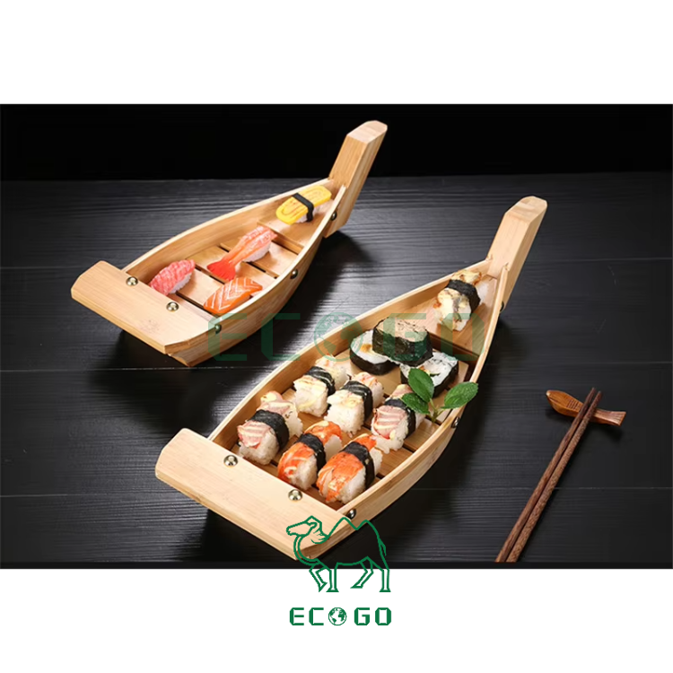 Hot Selling Tableware Japanese Bamboo Sushi Boats Restaurant Display Tray Sashimi Platter Decoration Natural Wooden Sushi Boat