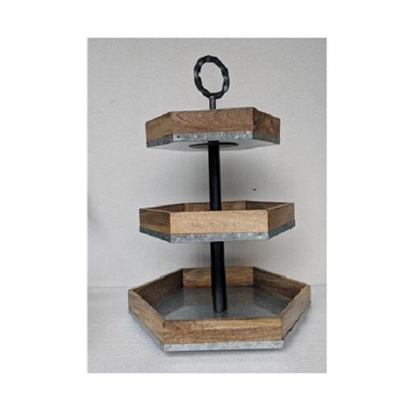 3 Tiered Galvanized Stand with Wooden Walls Antique