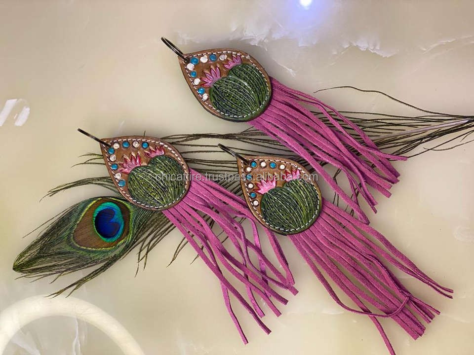 Product name:Tooled Cowhide Leather Turquoise Tassel Keyrings