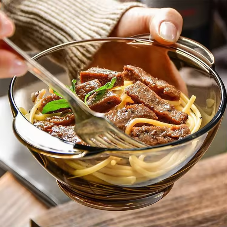 Hot Selling Translucent Grey Glass Bowl Set With Lid Household Noodle Bowl Fruit Salad Bowl Promotional Event Gift