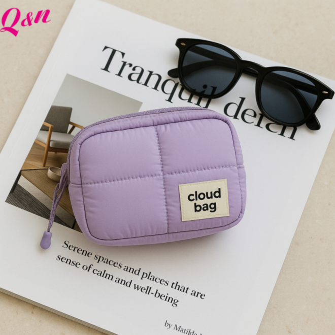 Hot Selling Travel Makeup Bag Custom Logo Soft Luxury Pink Quilted Cosmetic Pouches Make up Storage Puffer Skincare Bag
