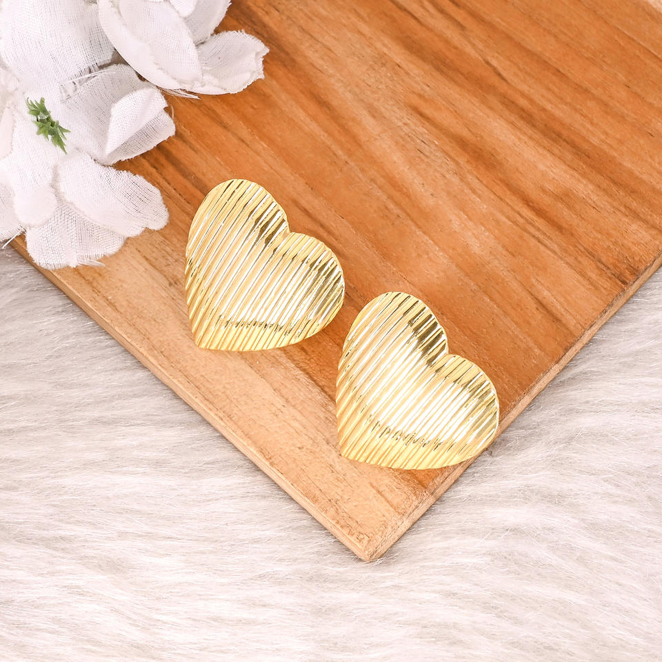 Hot Selling Trendy Striped Stud Earrings Cute Gold Plated Brass Heart Shape Earring Fashionable Costume Jewelry for Women