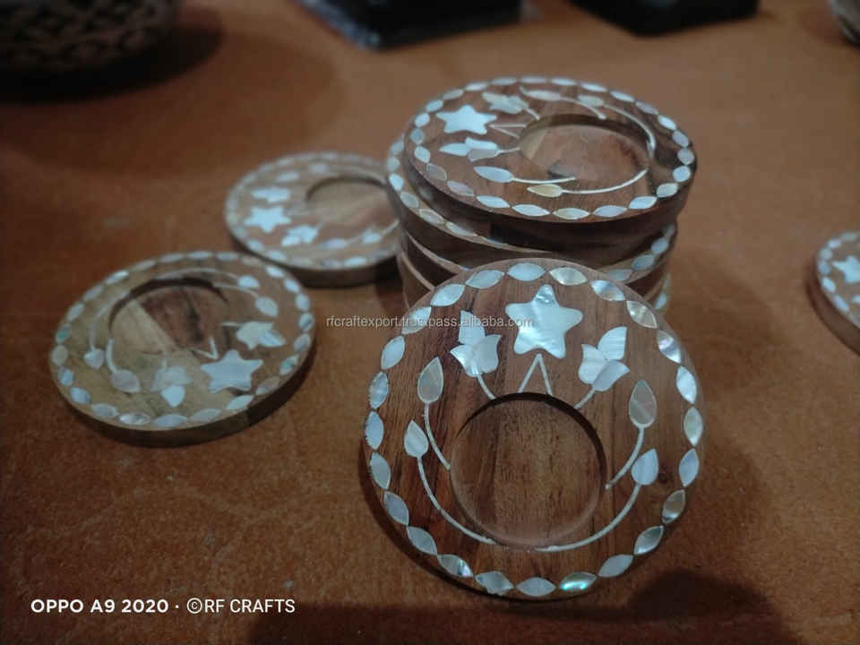 Hot Selling Unique Mother of Pearl Cup Coaster Best Flower Design Round Shape Custom Size Serving Trays by RF Crafts