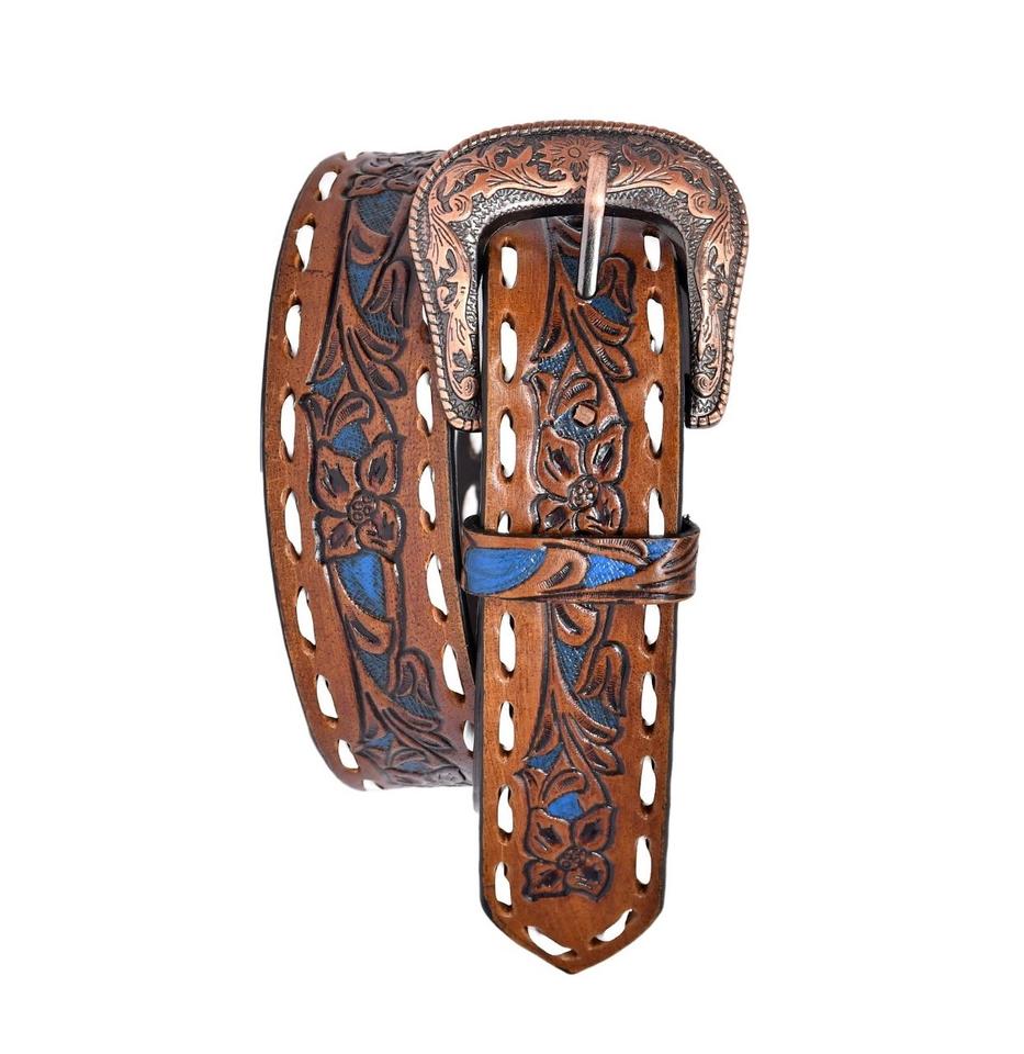 Hot Selling Unisex Floral Tooled Leather Belts with Beaded Buckles Customized Durable Horse Products Best Sellers