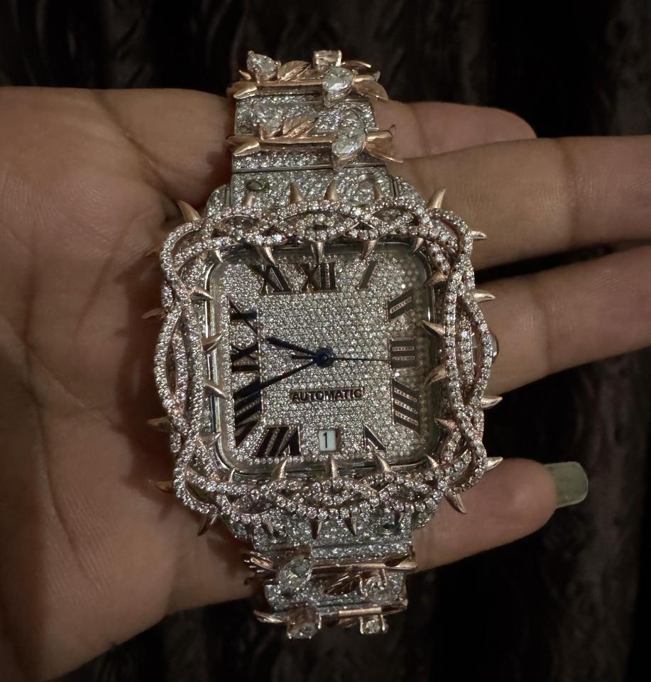 Hot Selling VVS Moissanite Automatic Watch 41MM Rose White Tone Thorns Luxury Iced Leather Timepiece for Men Business Antique