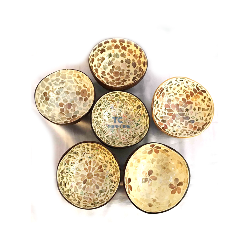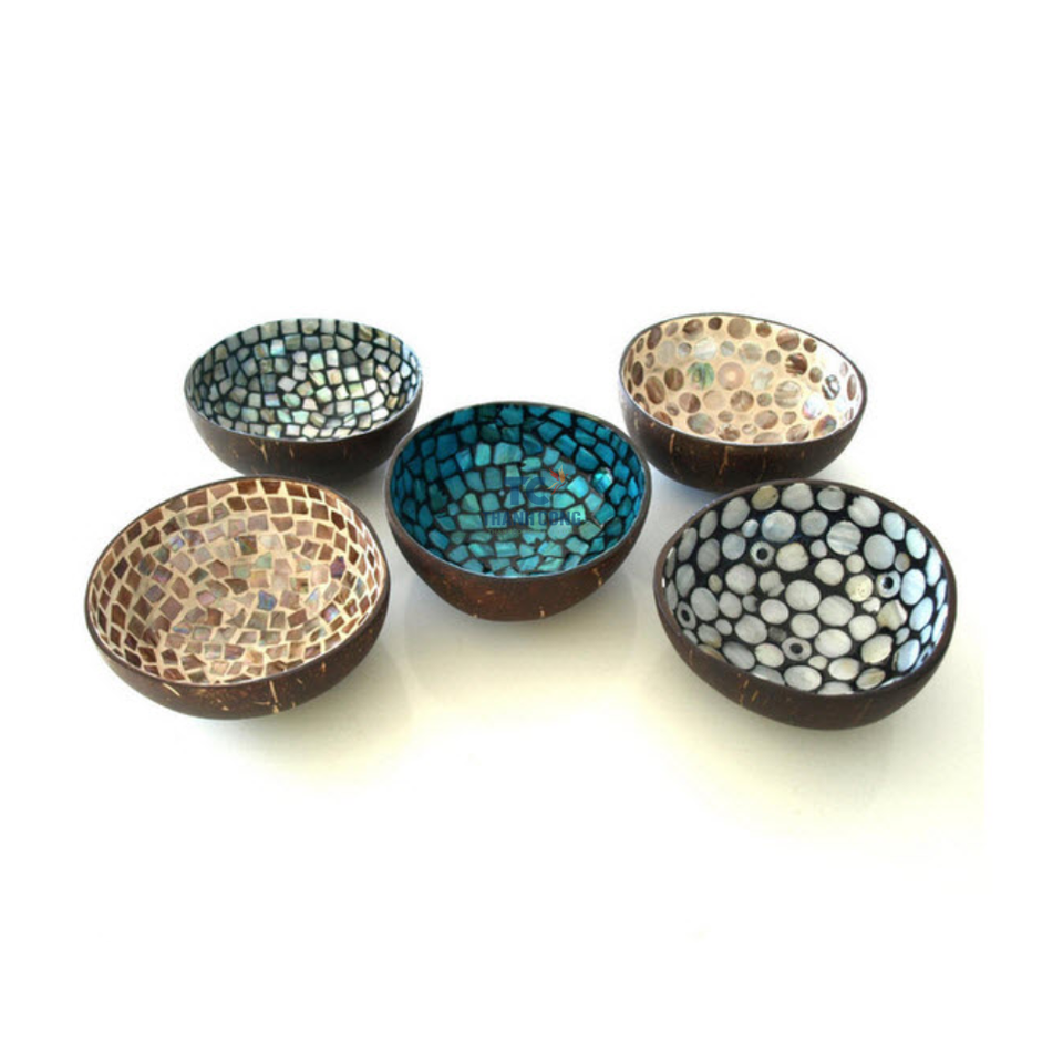 Hot Selling Vietnam Handmade Coconut Shell Lacquered Bowls With Seashell Eggshell Inlaid Mother of Pearl Bowl