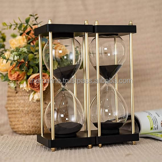 Hot Selling Vintage Brass 60 Minute Hourglass Sand Timer Wooden Base Table Top Collectible Decorative Time Clock for Gift