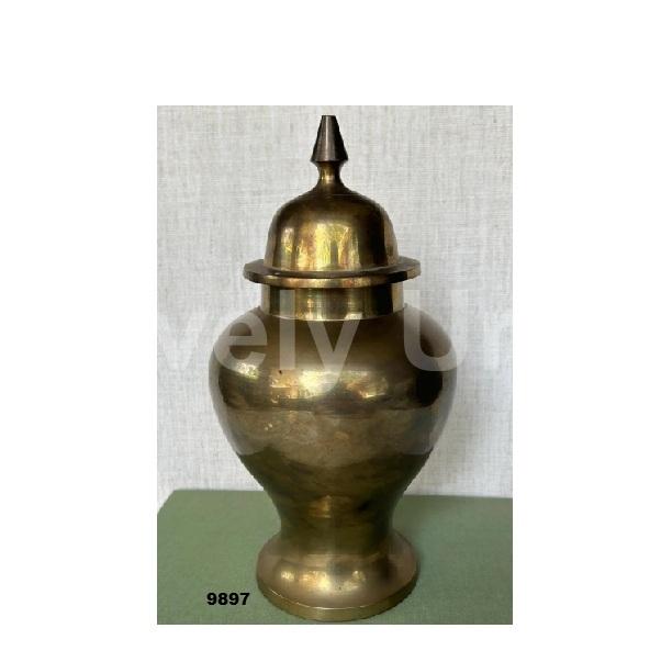 Hot Selling Vintage Brass Textured Striped Urn Lidded Ginger Jar Cremation Urn With Free Velvet Bag