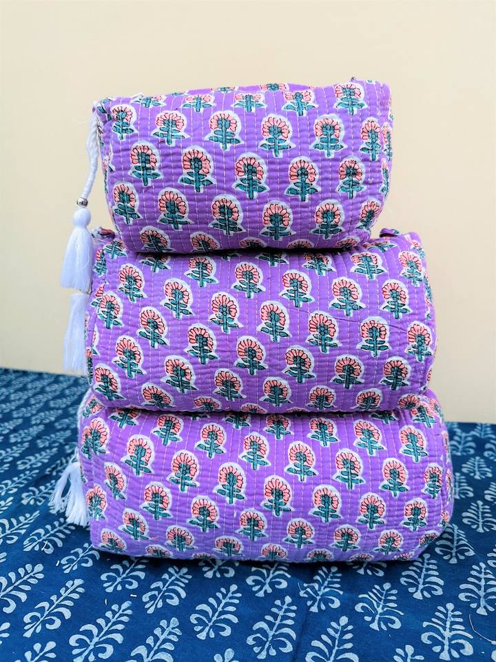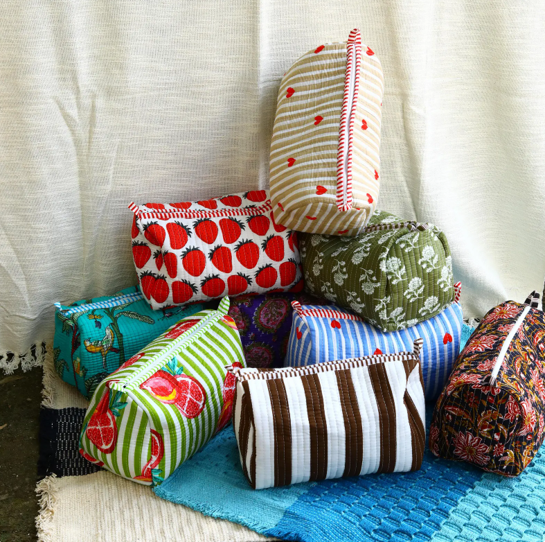 Hot Selling Vintage Large Cotton Quilted Zipper Case Block Printed Handmade Cosmetic for Bag for Women