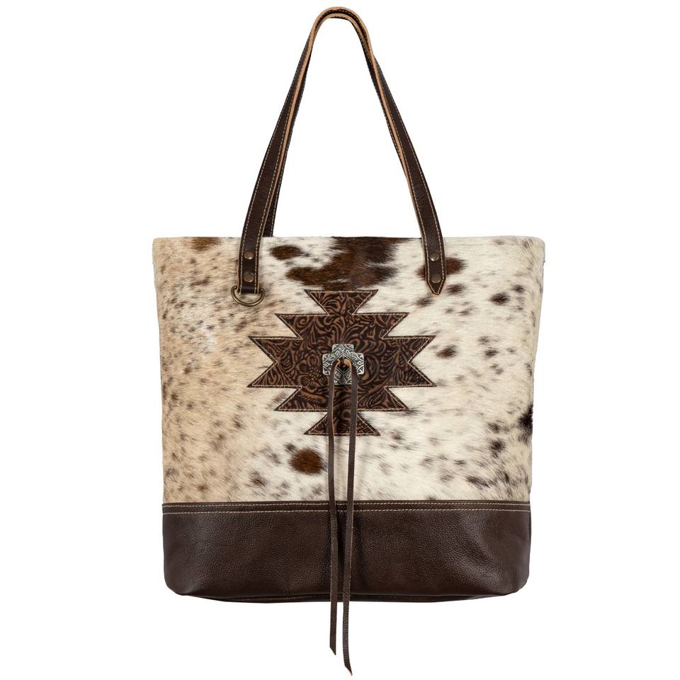 Hot Selling Vintage Style Handmade Carving Cowhide Fur Leather Tote Bag Women Zip Closure Fashionable Antique Look Canvas Lining