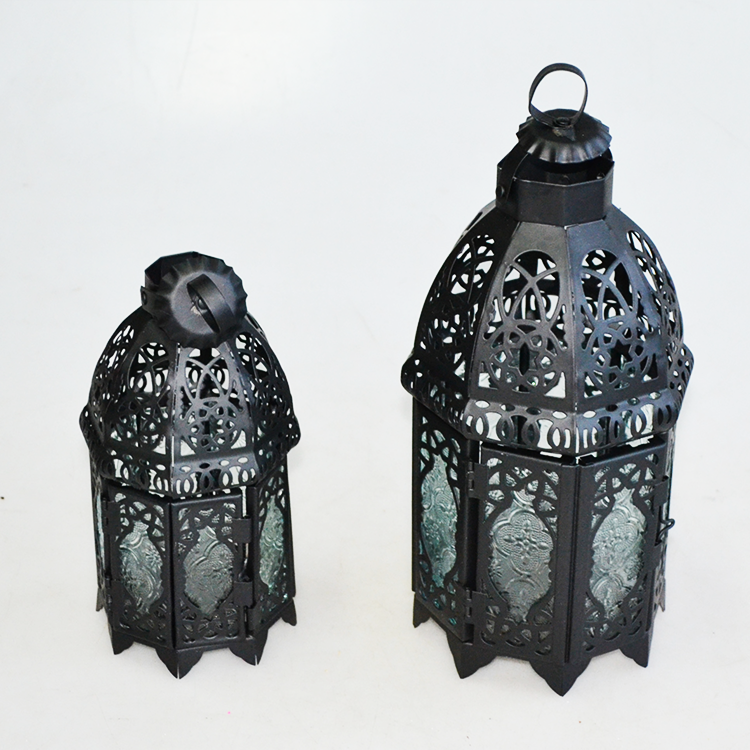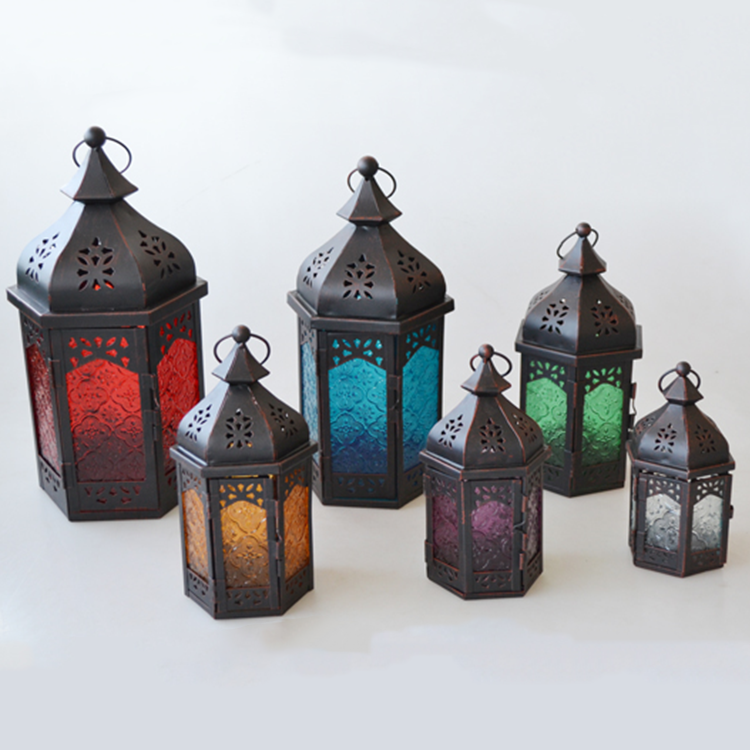 Hot Selling Vintage Style Outdoor Garden Decor Wrought Classic Metal Candle Holder Brown and Green Lantern