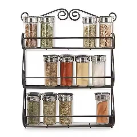 Hot Selling Wall-Mounted Iron Spice Rack Organizer Multi-Purpose for Hotel Home Restaurant Kitchenware Made Durable Metal