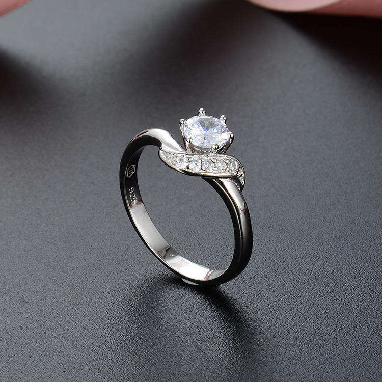 Hot Selling Wave Bypass Solitaire Engagement Ring 925 Sterling Silver Lab Diamond in 14K Pure Gold Wedding or Promise Ring Gift