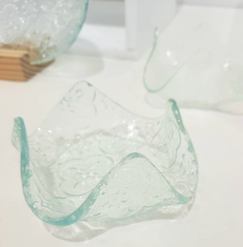 Modern Design Fluted Edge Floral Pattern Hand Blown Transparent Glass Wedding Candle Holder with Glass Tray