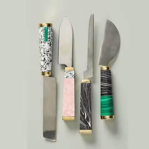 Hot Selling Wedding Cheese Cutter Knives Set Marble Handle Stainless Steel Pizza Knife Cake Amazing Set