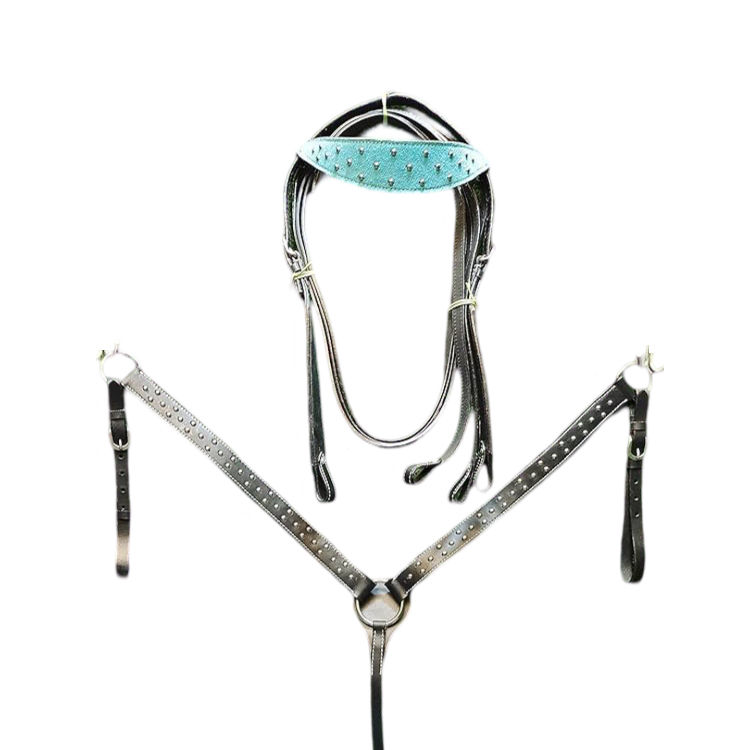 Hot Selling Western Equestrian Breastplate Carved Glittering Leather Stainless Steel Halter Headstall Fancy Stitching for Riding