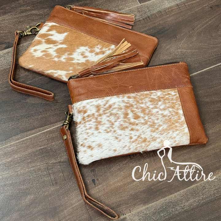 Women's Stylish Cowhide Leather Wristlet Bag Portable Envelope Bag Clutch Wallet Small Purse Traveling Wristlet & Tassel Pouch
