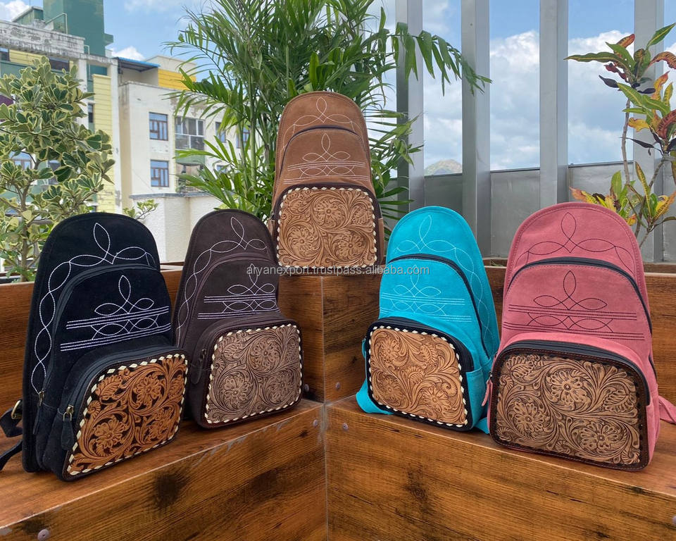Hot Selling Western Hand Tooled & Boot Stitch Pink Suede Leather Chest Bag with Backpack Floral Crossbody Sling Bag for Women's