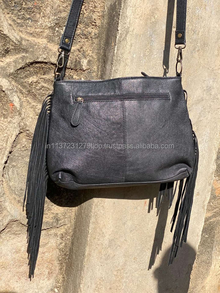 Handmade Women's Cowhide Leather Tote Bag Natural Cow Suede Fringes Crossbody Style Tooled Patch Nylon Lining Zipper OEM Logo