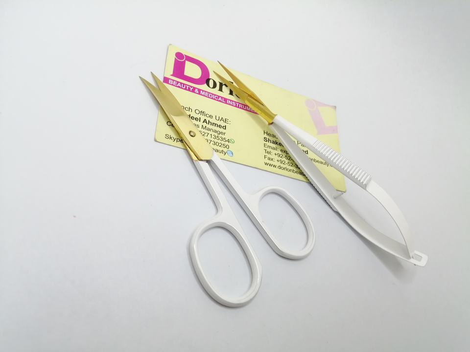 White Eyebrow Tweezers Gold Pointed Slanted Tips With Eyebrow Scissors