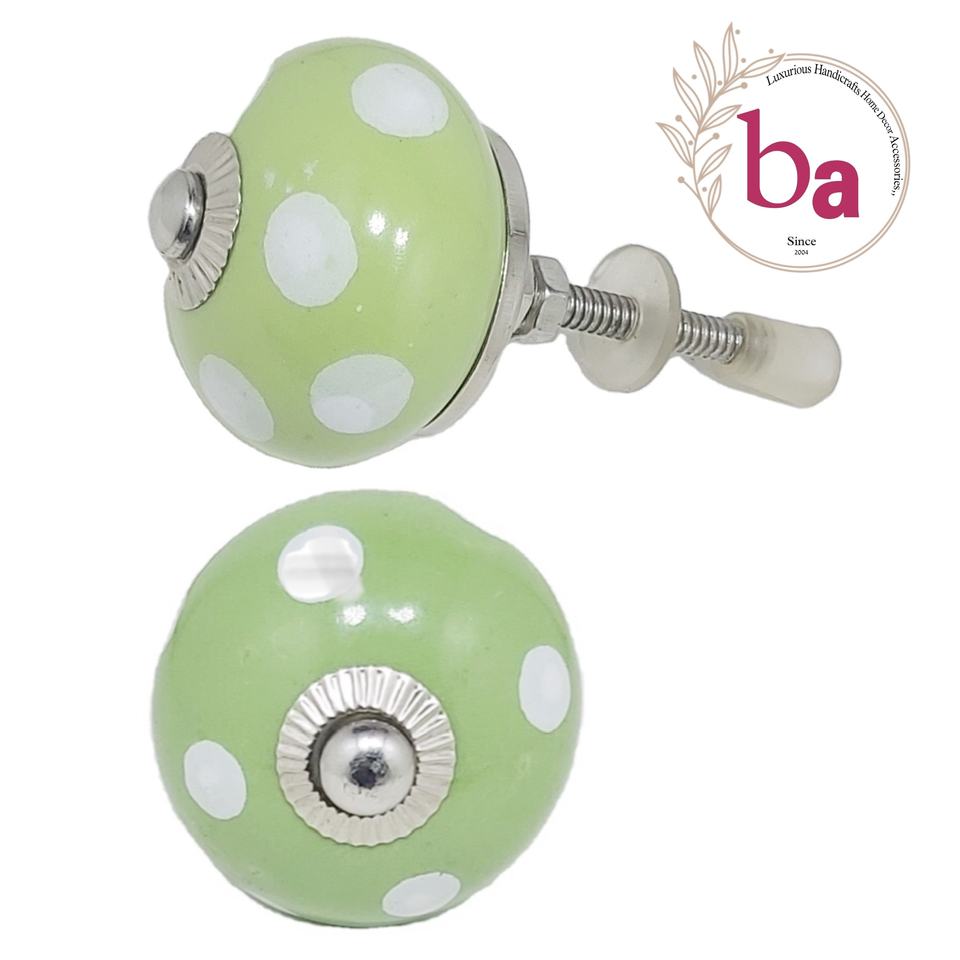 Hot Selling White Polka Dotted Lemon Green Ceramic Knobs Industrial Drawer Cabinet Handle Pulls for Kitchen Wardrobe Bedroom
