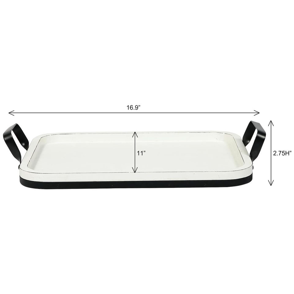 Hot Selling White Wooden Tray Rectangular Solid Wooden Serving & Decor Tray with Metal Handles for Bars Restaurants and Home Use