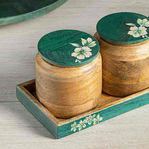 Acrylic Wooden Tray with Natural Wood Storage Jar Enamel Printed Coffee Serving Tray for Home Use Rectangle Food Trays