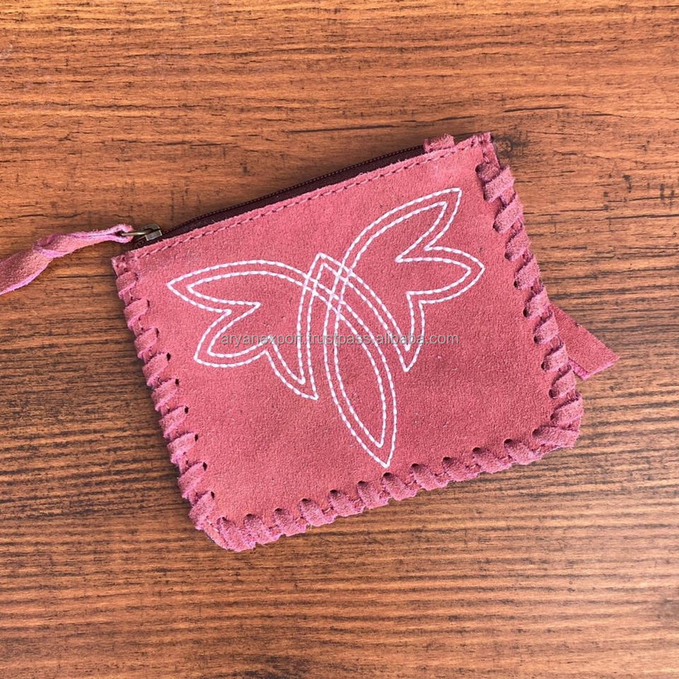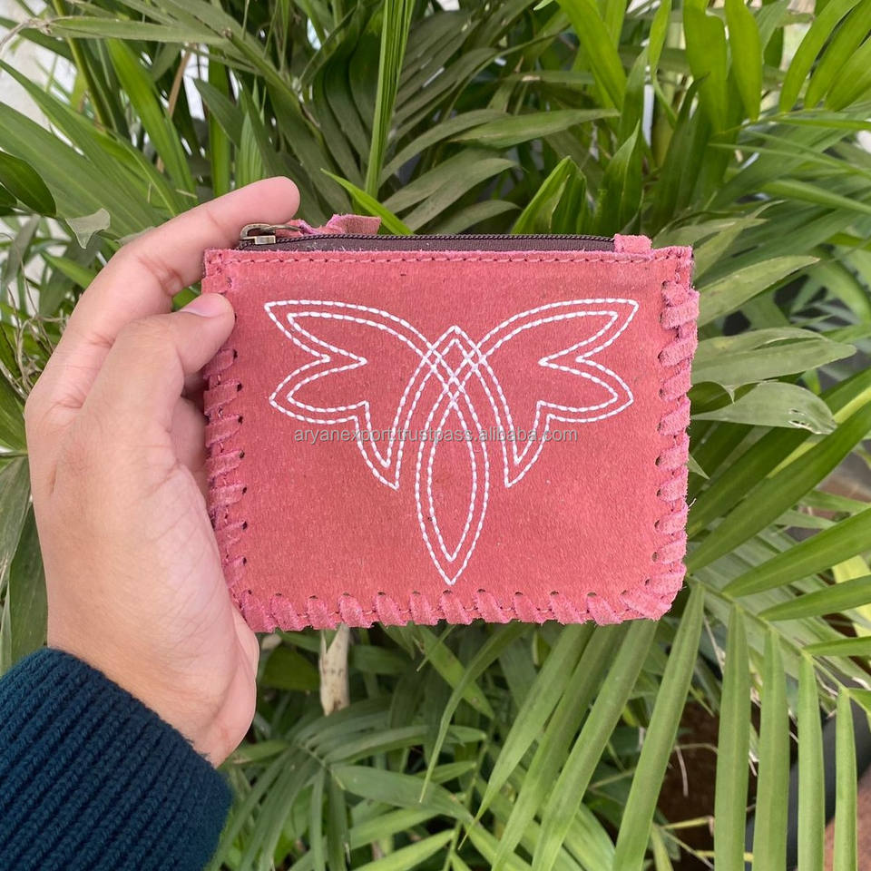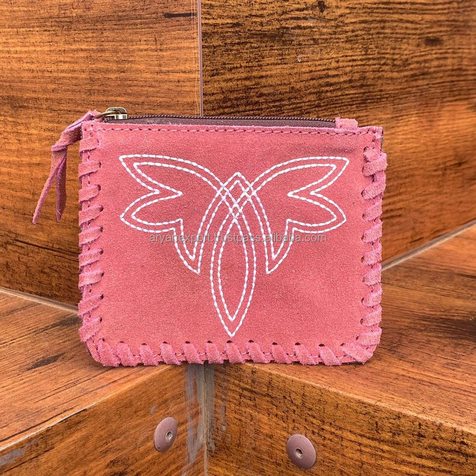 Hot Selling Wholesale Vintage Women Boot Stitch Suede Leather Coin Purse Fashion Luxury Genuine Leather Credit Card Small Wallet
