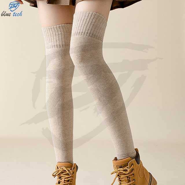 Hot Selling Winter Leg Warmers Solid Over the Knee Knitted Thick Acrylic Polyester Plus Size Thigh High Womens Socks