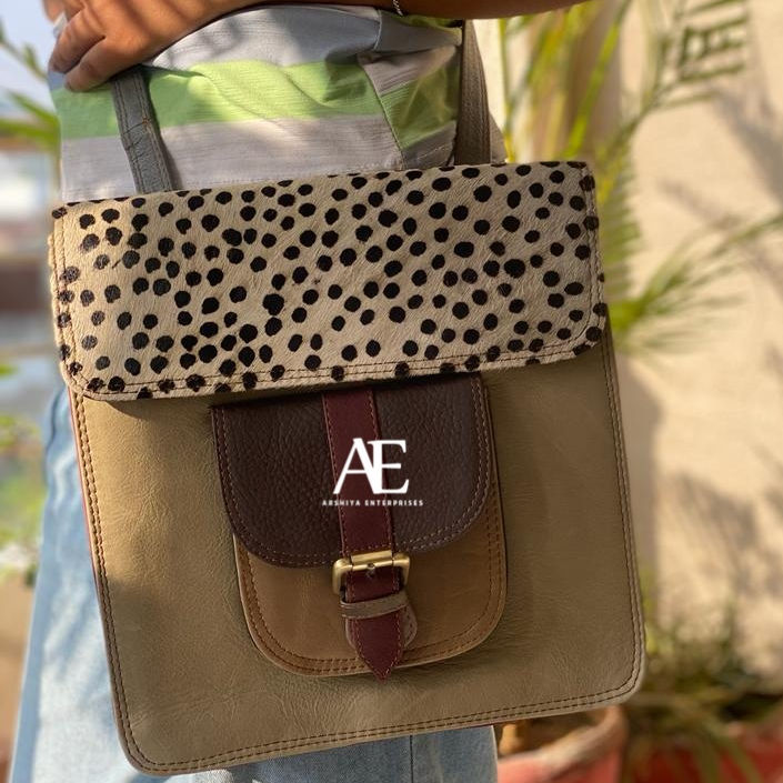 Hot Selling Women Recycled Leather Sling Bag Stubby Color Shoulder Bag Animal Print Fur Leather Two in One Handbag or Backpack