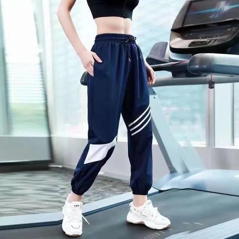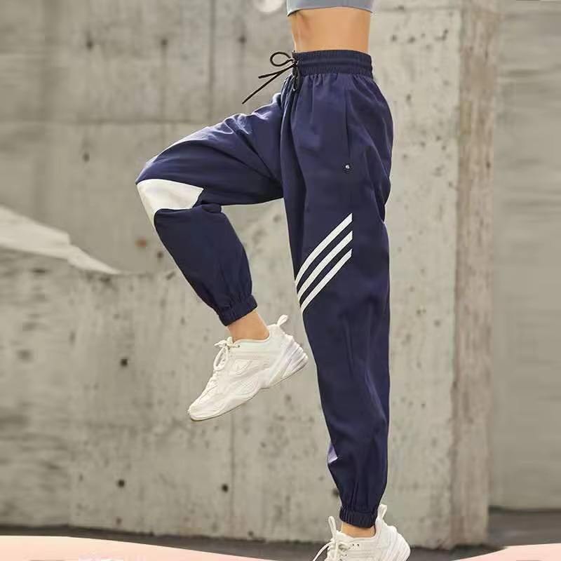 Hot Selling Women Striped Casual Pants Drawstring Pockets Quick Drying Polyester Pants Spring Summer Jogging Sports Pants