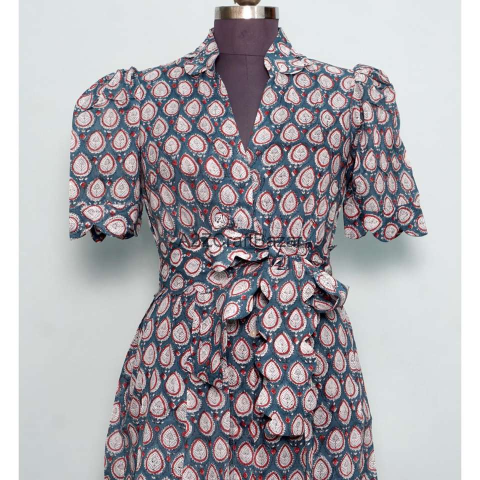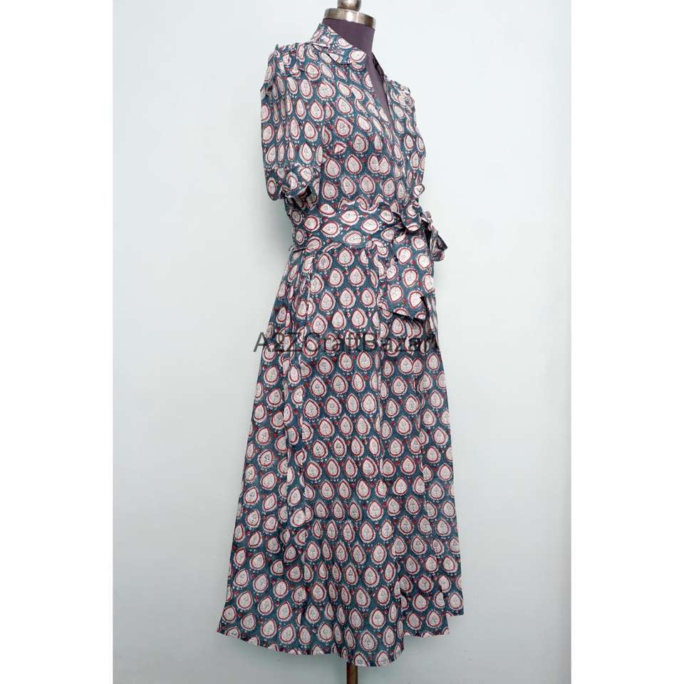 Hot Selling Women's 100% Cotton leopard print Midi Dress Eco-Friendly & Washable Breathable animal Printed V-neck Long dress