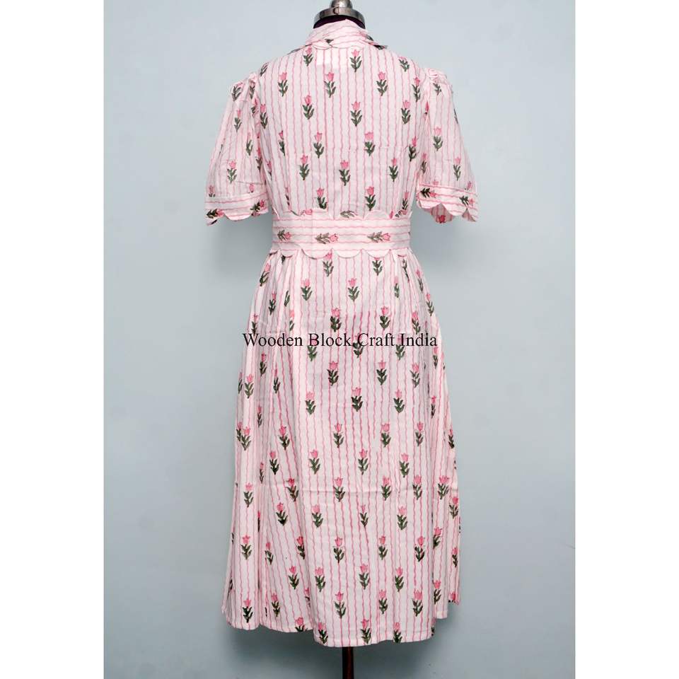 Hot Selling Women's 100% Cotton Midi Dress Eco-Friendly Washable and Breathable Button and belt Printed V-neck short Sleeve