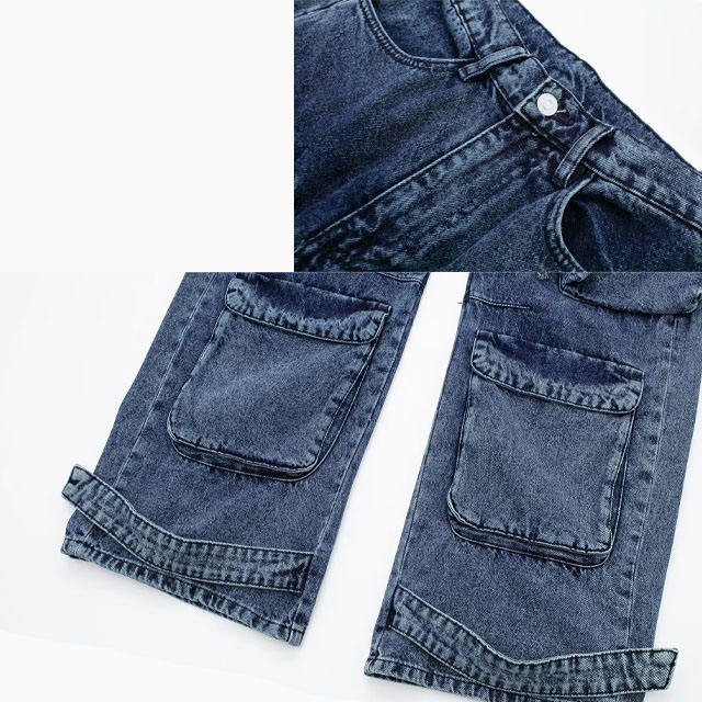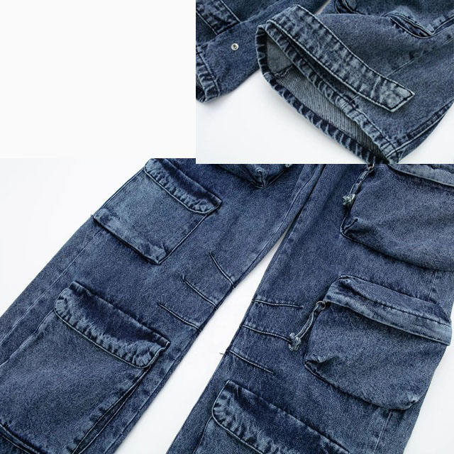 Hot Selling Women's Cargo Denim Pant for Summer Multi-pocket Ripped Straight Washable Retro Casual Jeans New Street Wear