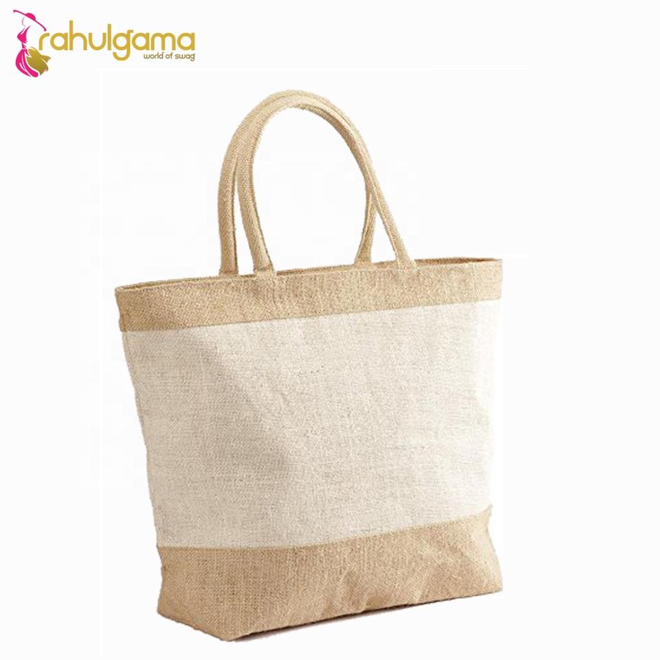 Hot Selling Women's Fashionable Reusable Jute Beach Tote Handbags Custom Logo Cotton Handle Shopping Bags for Gifts