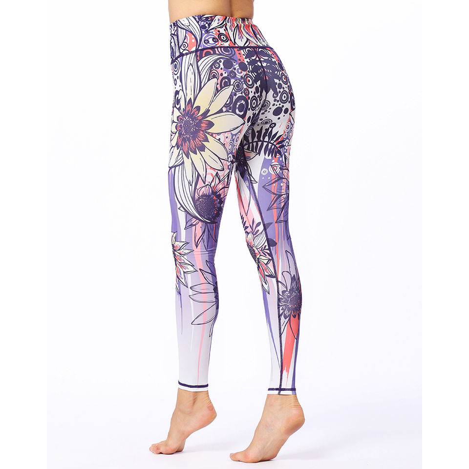 Hot Selling Women's Fitness Yoga Leggings 100% Cotton Breathable Heat-Transfer Printed Thick High Quality Knitted Fabric