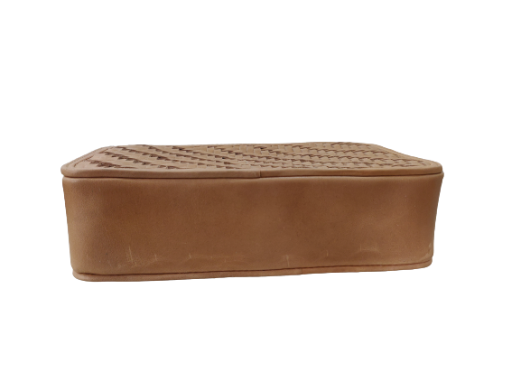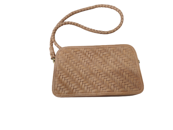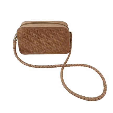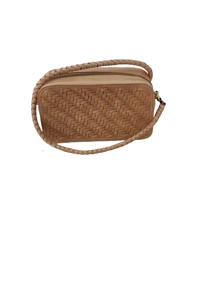 Hot Selling Women's Genuine Caramel Leather Tote Bags Square Crossbody Hand Woven Diagonal Weave Braided Leather Chains Zipper