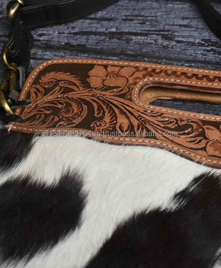 Hot Selling Women's Genuine Leather Zipper Closure Waterproof Handbag Casual Vintage Western Style Square Pattern Fur Tassel